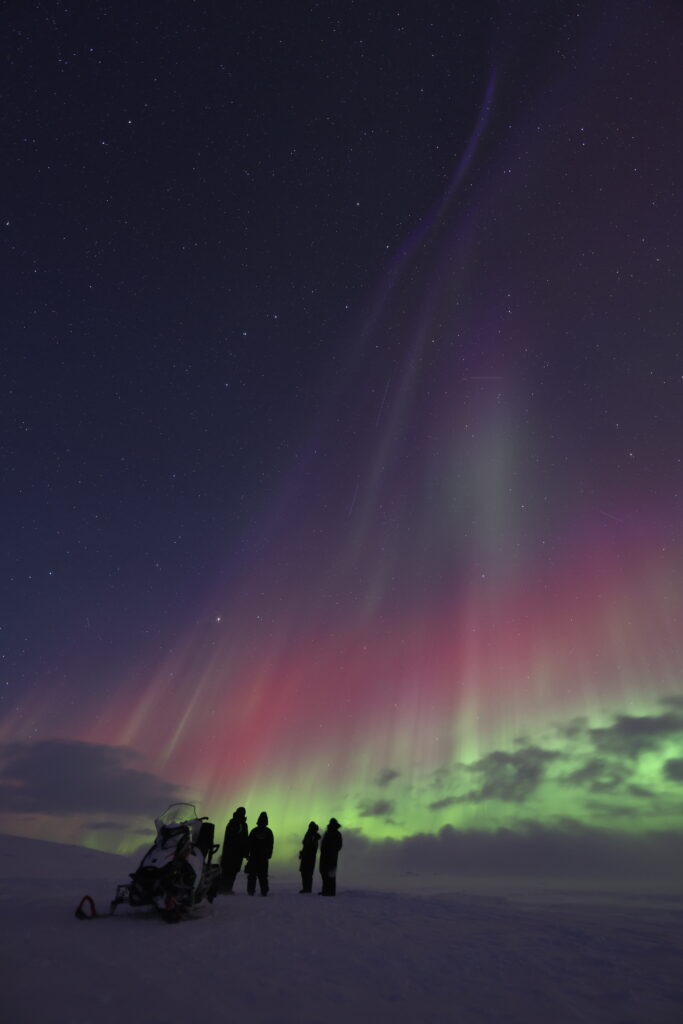 Tilastollisesti Kilpisjärvellä on kirkas taivas ja revontulia useammin kuin missään muualla Suomessa. Lyhyen moottorikelkkamatkan jälkeen pääsemme ihailemaan yötaivasta rikkumattomassa luonnonrauhassa. Suosittelemme osallistumista moottorikelkkaillen.